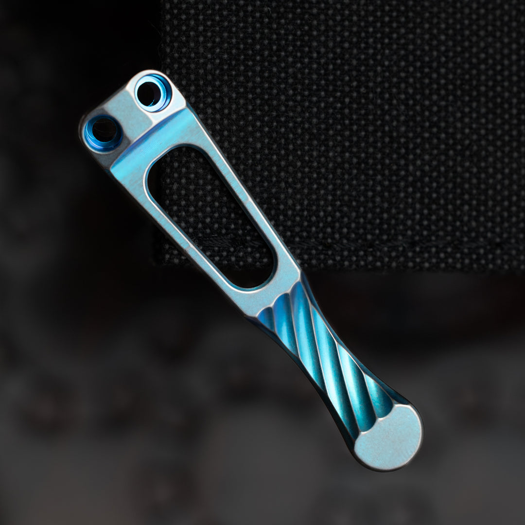 Ti2 Titanium Torch Clip Twist -- Tumbled Ano (1" diameter flashlights)